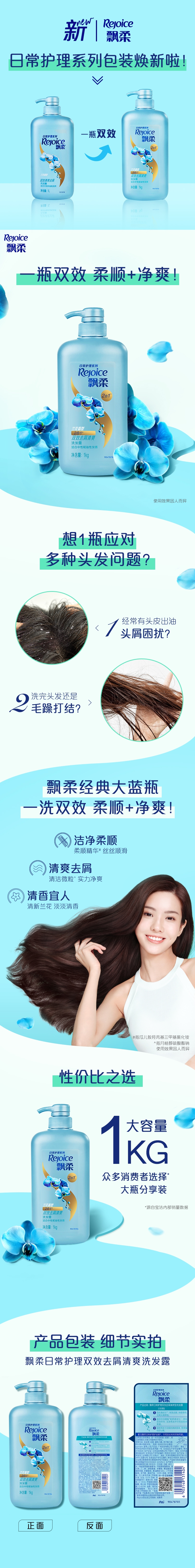 飘柔兰花去屑洗发水露1kg 洗发水控油蓬松 男女官方正品 1件装