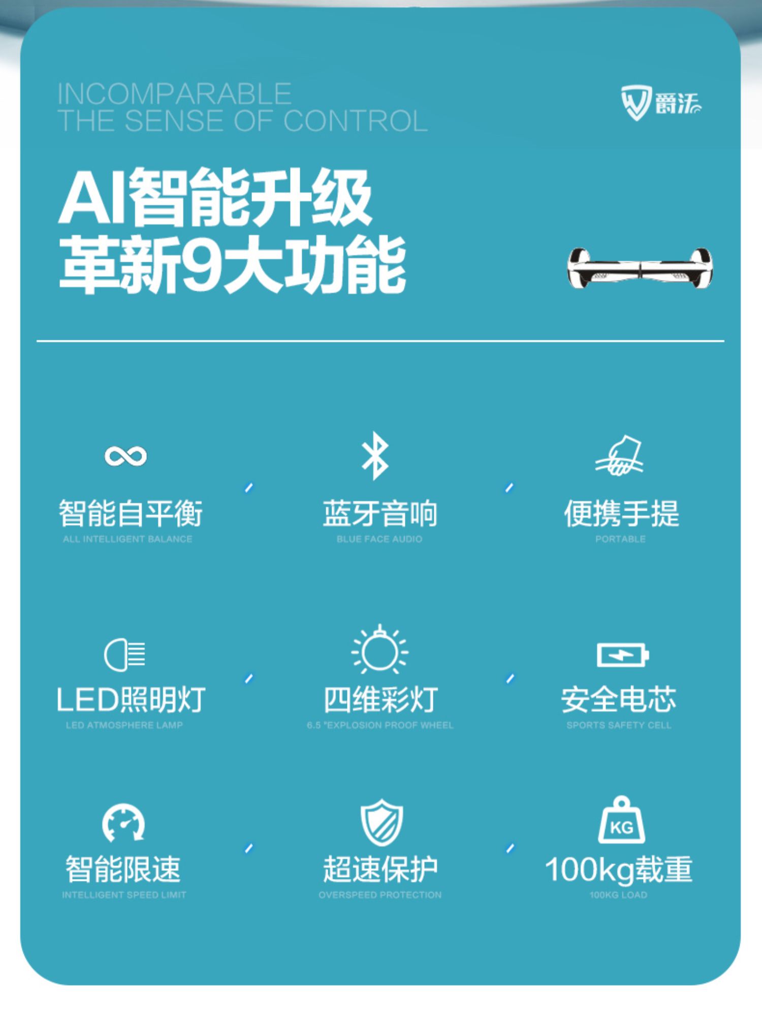 爵沃官方旗舰店智能电动平衡车儿童6一8一12双轮无杆10一15平行车