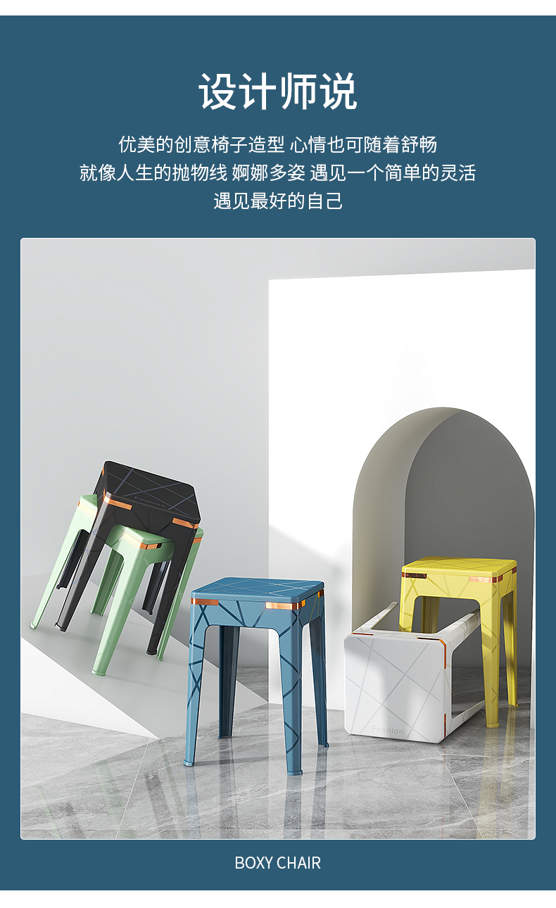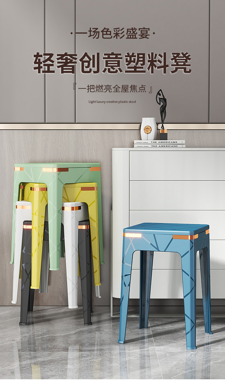 加厚塑料凳子时尚方凳成人椅子可叠放餐桌板凳家用现代简约高凳子