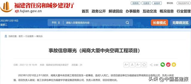 闽商大厦中央空调工程项目发生一起事故,造成1人死亡